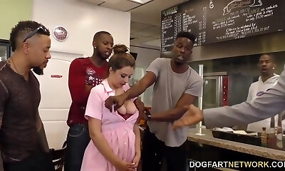 Hardcore bi-racial blowbang for whorish petite blonde Piper Perri
