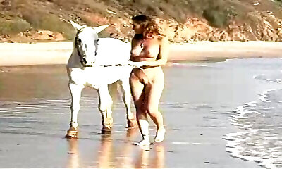 Luxurious brunette Merritt Cabal rides her horse and loves it