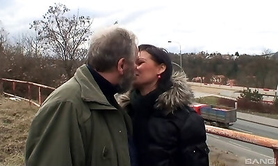 Gorgeous Czech pornographic star gets fucked by a super-naughty old chap outdoors