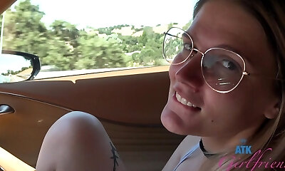 Platinum-blonde amateur Luci Angel gets undressed and boinked in the car