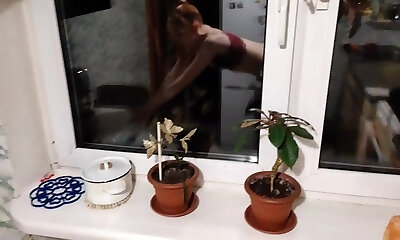 Horny ginger teenager wants to get fucked doggystyle in the kitchen