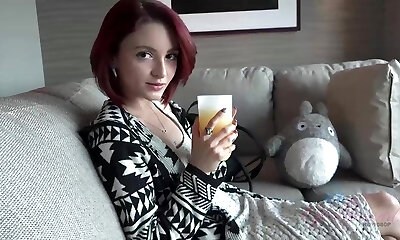 Hot redhead slut hungry for BBC sex likes eating her friend's monstrous monstercock and then asks him to destroy her pussy