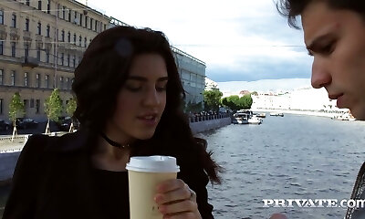 Russian woman Lindsay Vood gives a blowjob and gets fucked on the first encounter