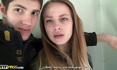 Timid girlfriend Scarlett Bloom fucked balls deep in her tight coochie