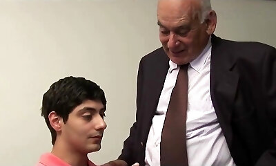 Elderly grey-bearded man fucks teen girl when her own boyfriend comes and joins