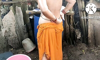 Anita yadav bathing outside with super hot