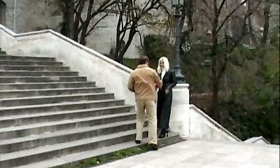 Blonde big tits milf in stockings heels bangs gr8