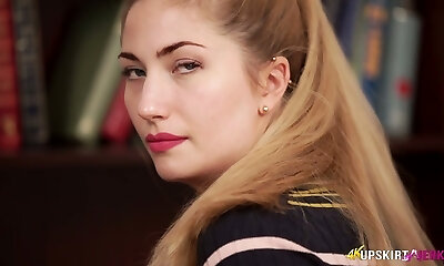 Lewd blondie Puma Swede plays with her vag in the living room
