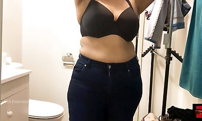 Teen in jeans does sexy solo striptease video